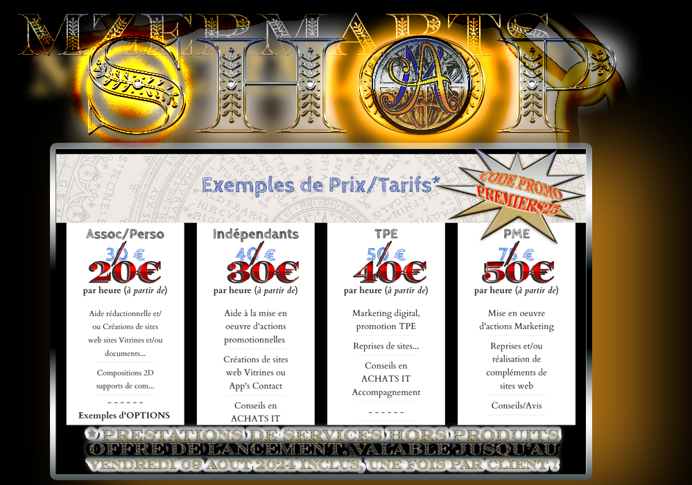 - Contactez-moi pour discuter de vos besoins spécifiques et obtenir un devis personnalisé, GRATUIT, à titre EXCEPTIONNEL, en mentionnant le code promo : PREMIER25, lors de votre demande pour bénéficier de votre remise EXCEPTIONNELLE, valable UNE FOIS PAR CLIENT, lors de votre première commande, et, ce, avant le 09 Août 2024, inclus…